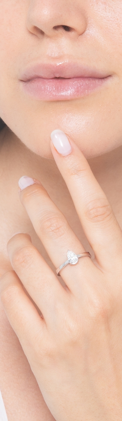 Ring with a diamond pear cut 0.50 ct GIA in 18k white gold