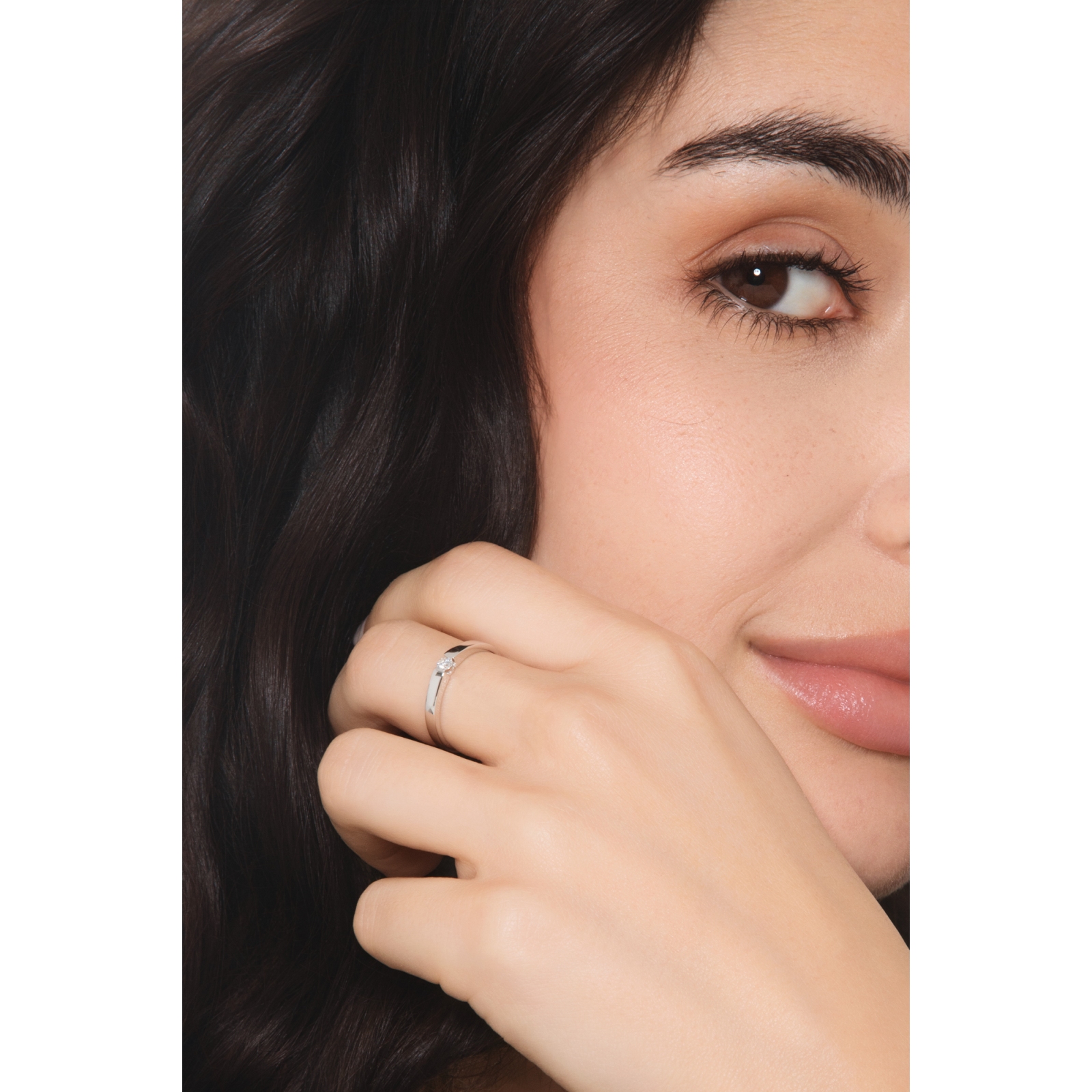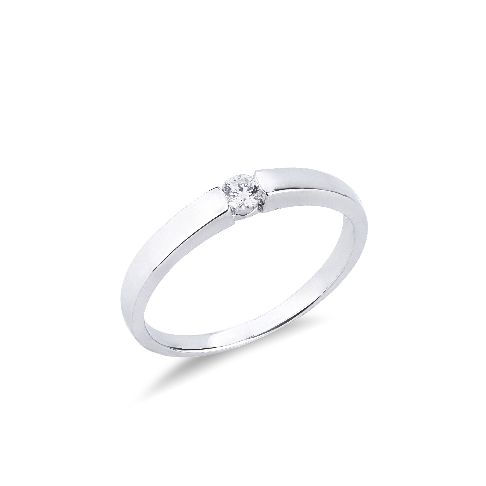 Solitaire ring tension setting in 18k white gold with a 0,10 ct diamond