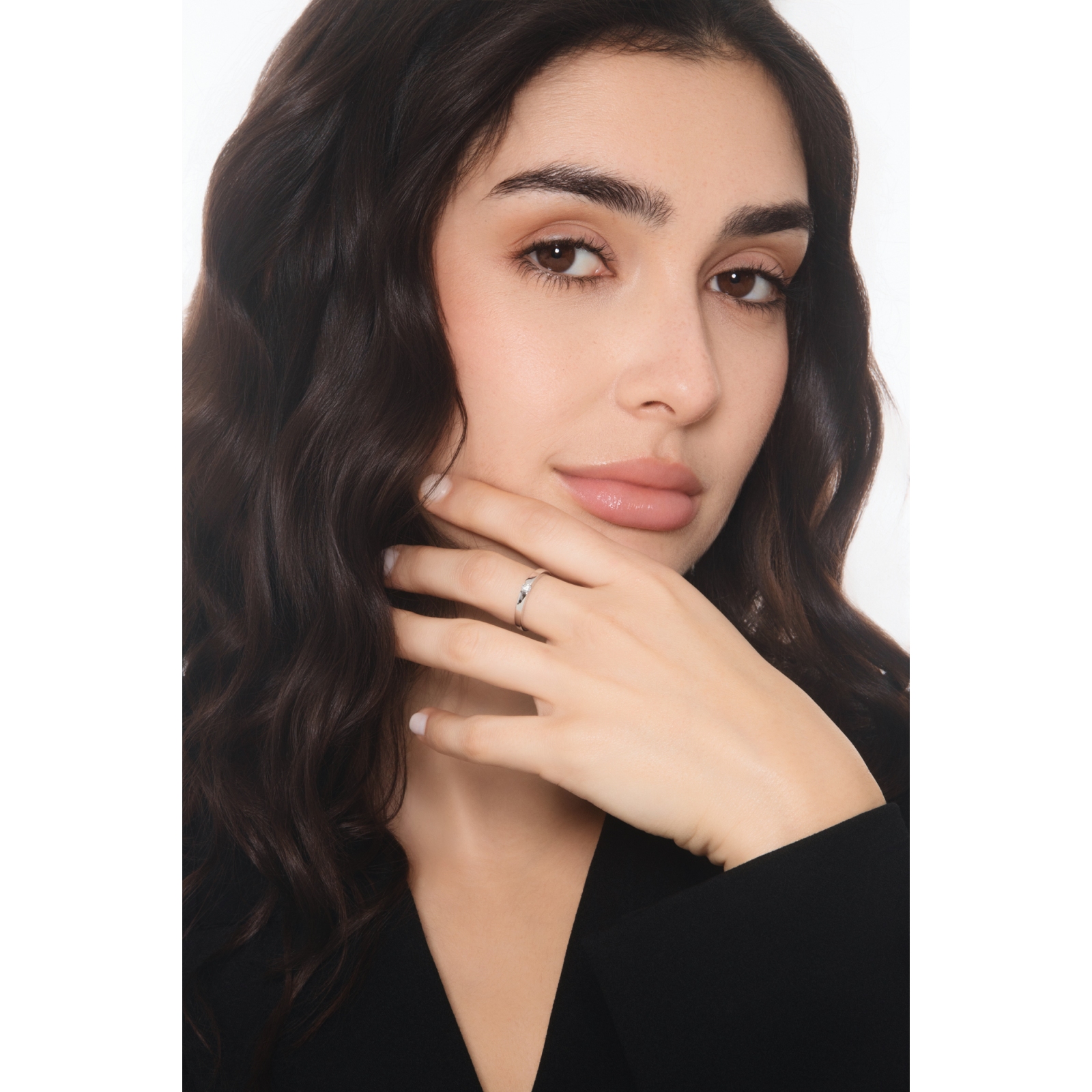 Solitaire ring tension setting in 18k white gold with a 0,10 ct diamond brilliant cut, H Color, VS Clarity