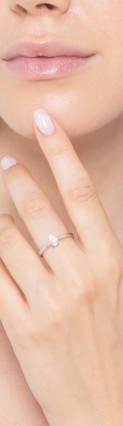 Solitaire ring with diamond pear cut 0.30ct GIA in white gold 18k