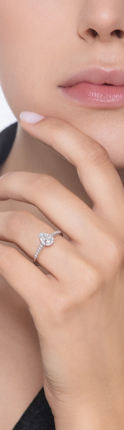 Solitaire ring with diamond pear cut 0.30ct GIA in white gold 18k