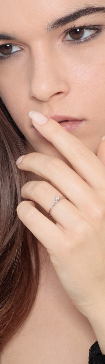 White gold 18k solitaire rhombus diamond ring 0,15 ct