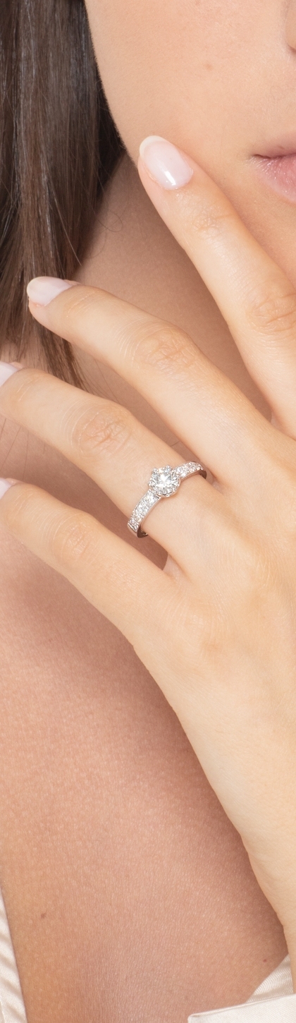 White gold 18k solitaire ring with central diamond 0,90 ct