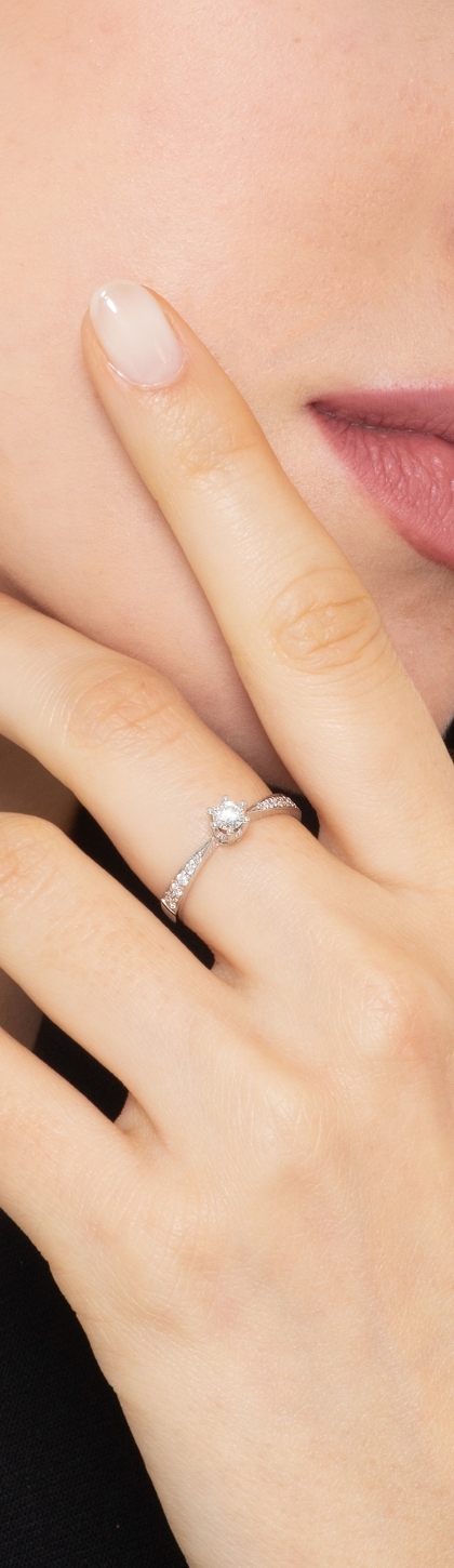 White gold 18k solitaire ring with diamonds