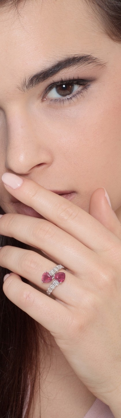 TOI et MOI ring in white gold 18k with two rubies heart cut and diamonds