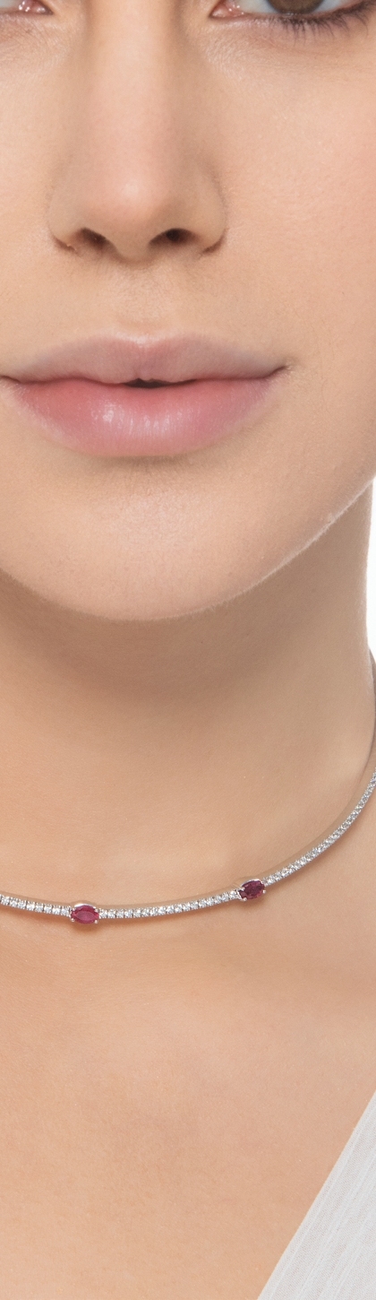 18k white gold choker with oval rubies and diamonds