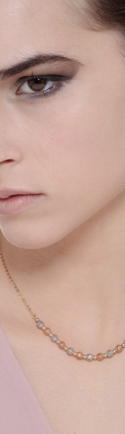Hammered spheres necklace in 18k yellow, rose and white gold