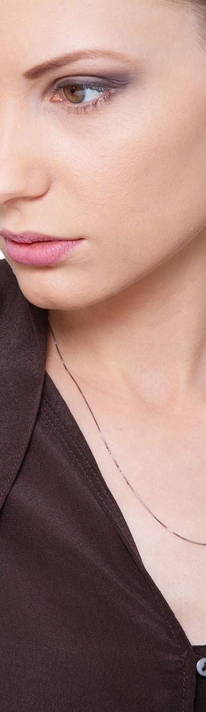 Plain Gold Jewelry: this all-brown gift box features our logo printed in a glossy filigree pattern along the edges, giving it a dainty yet striking look. Inside, a white velvet cushion holds your jewelry in place. A fabric bow completes the box.