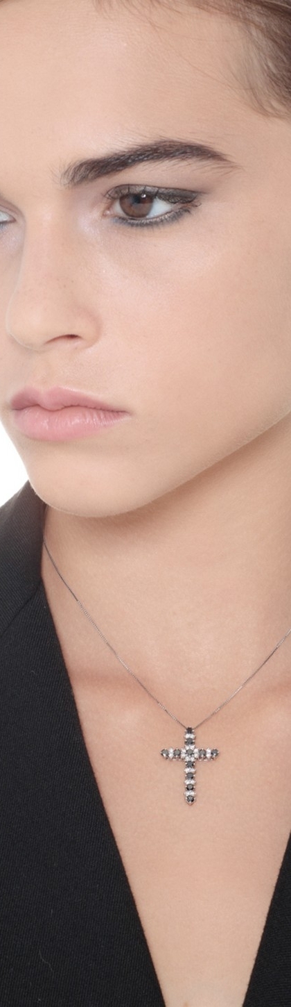 Cross pendant with black and white diamonds