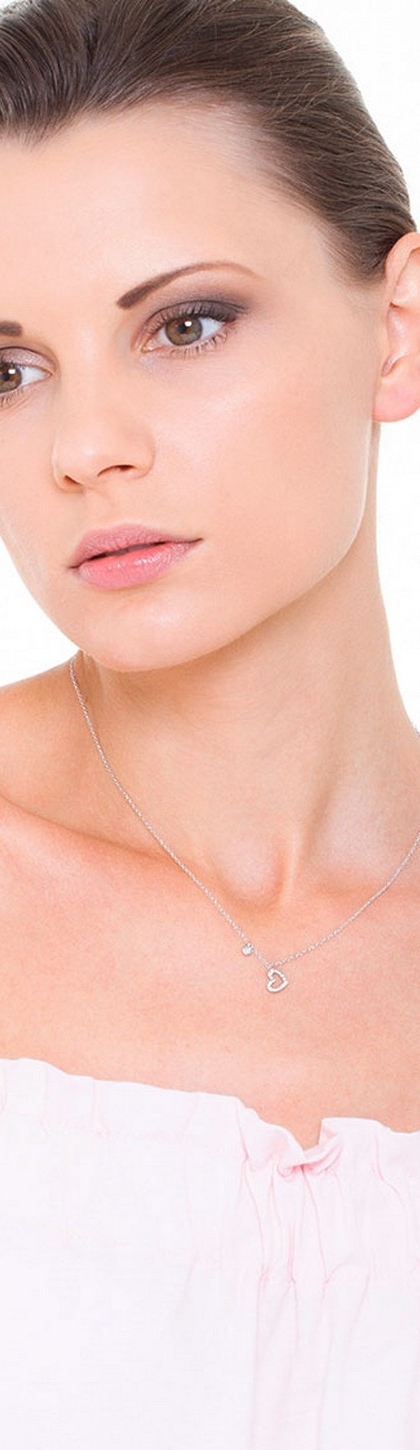 18k white gold inclined heart pendant with diamonds and a solitaire diamond