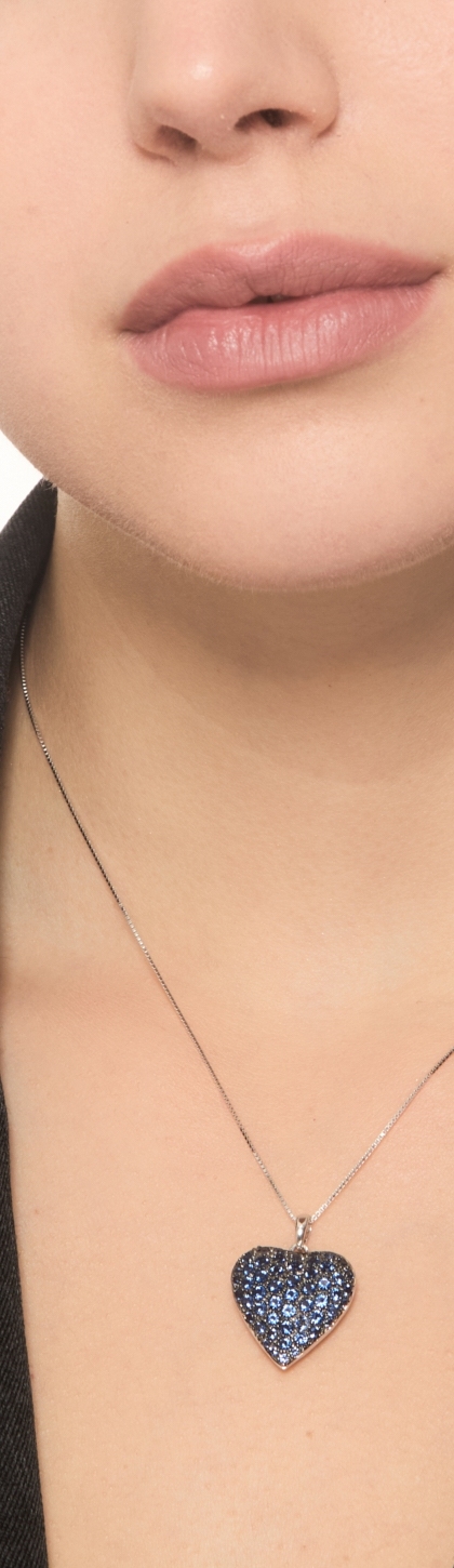 18k white gold necklace with a burnished blue sapphire pavé heart pendant