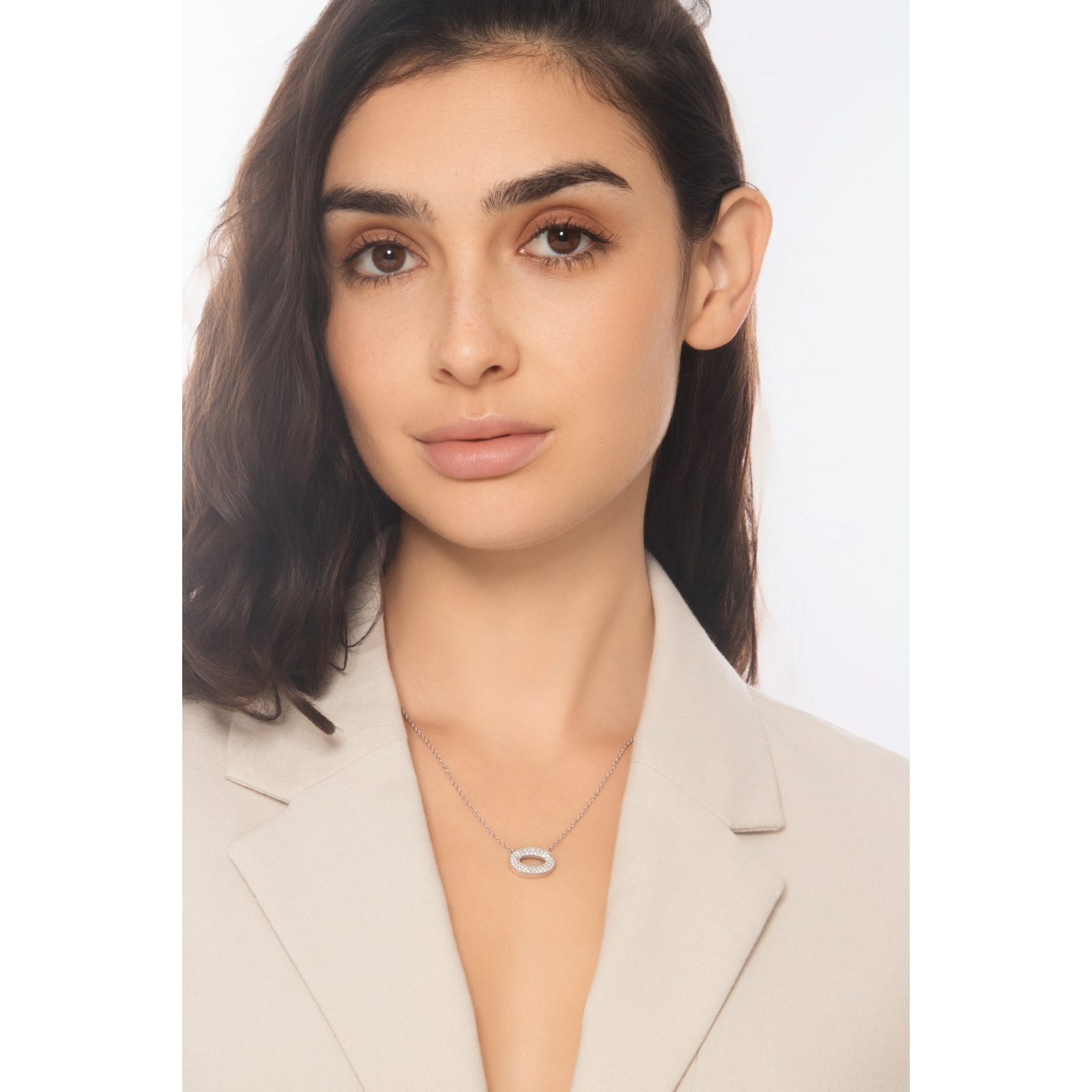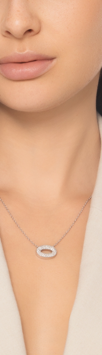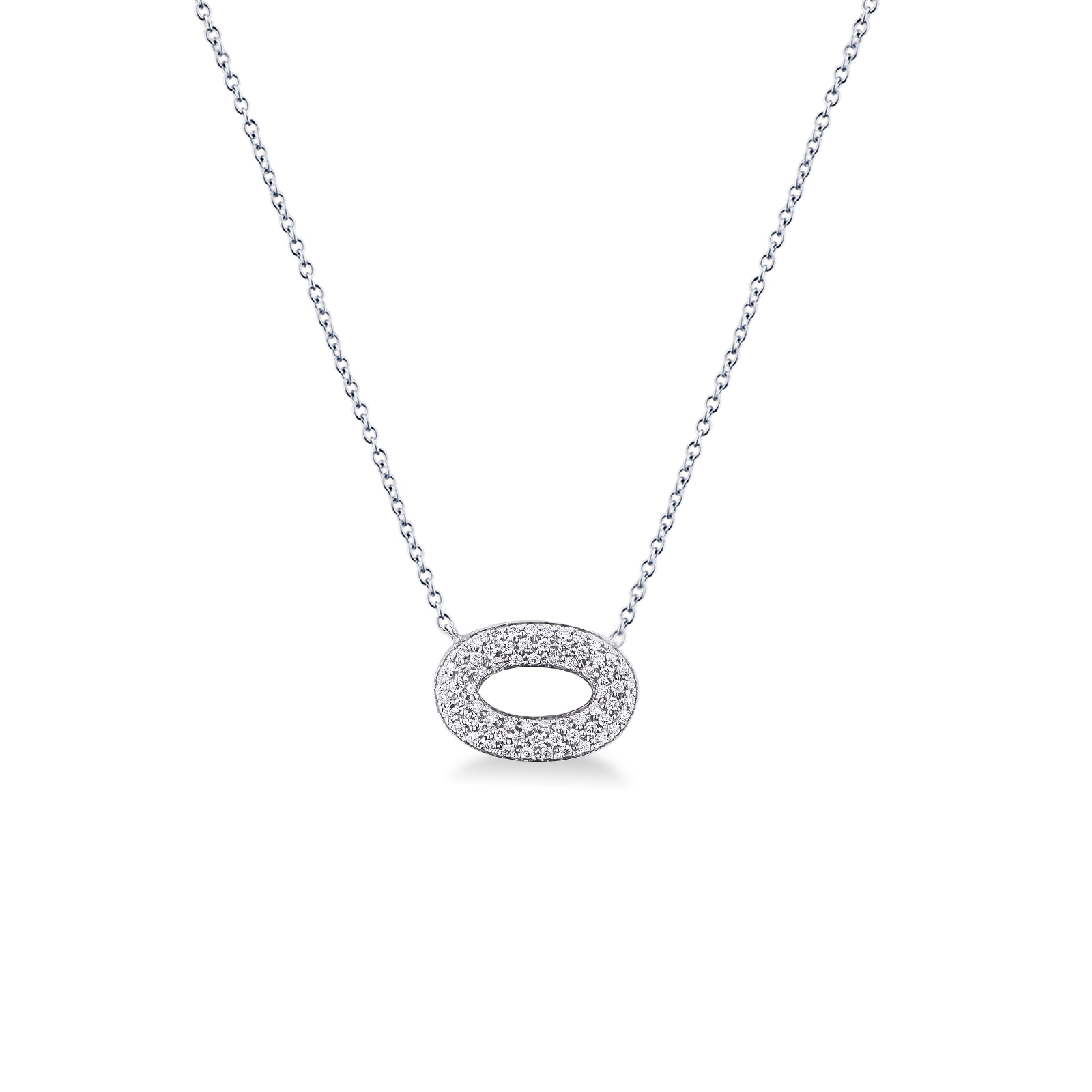 Necklace in white gold 18k with oval pavè diamonds pendant brilliant cut, H color, Vs clarity.
