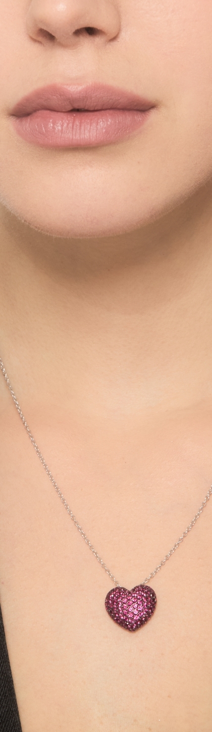 750 white gold necklace with heart ruby pavè pendant