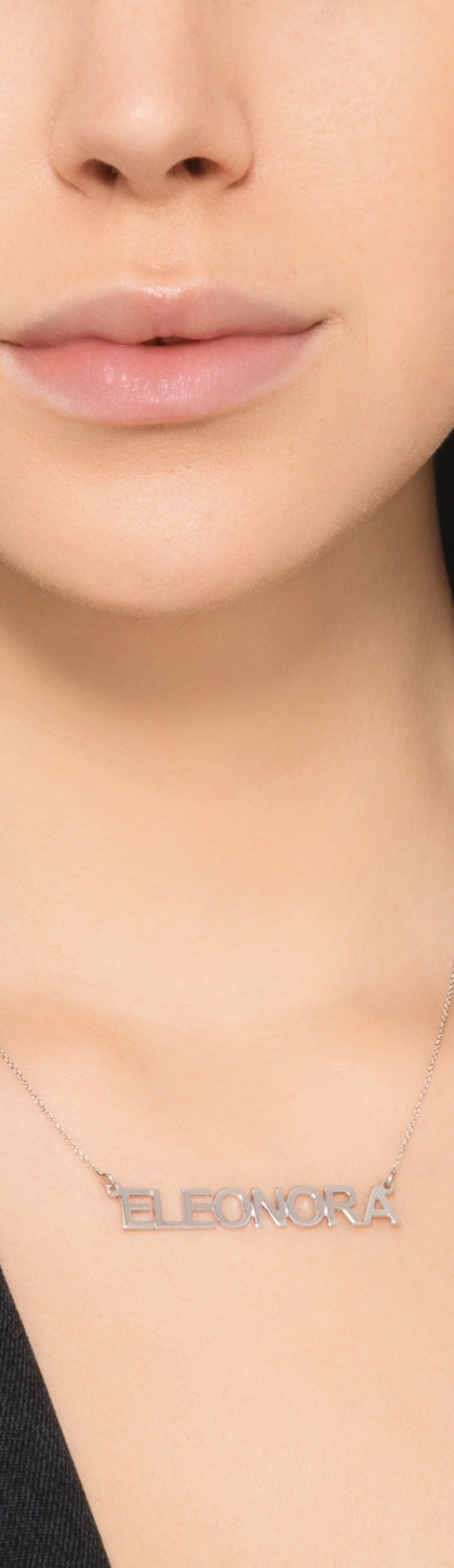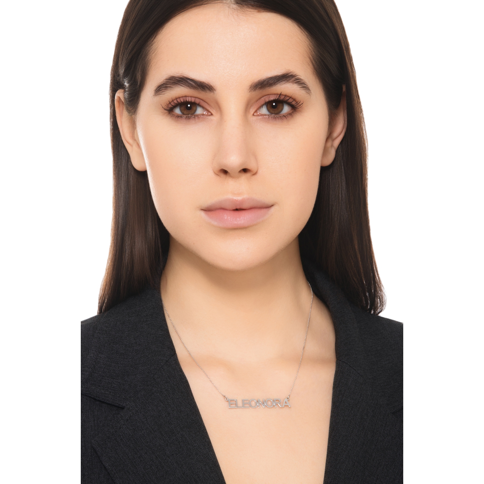 Customizable necklace in 18k white gold block letters, ELEONORA