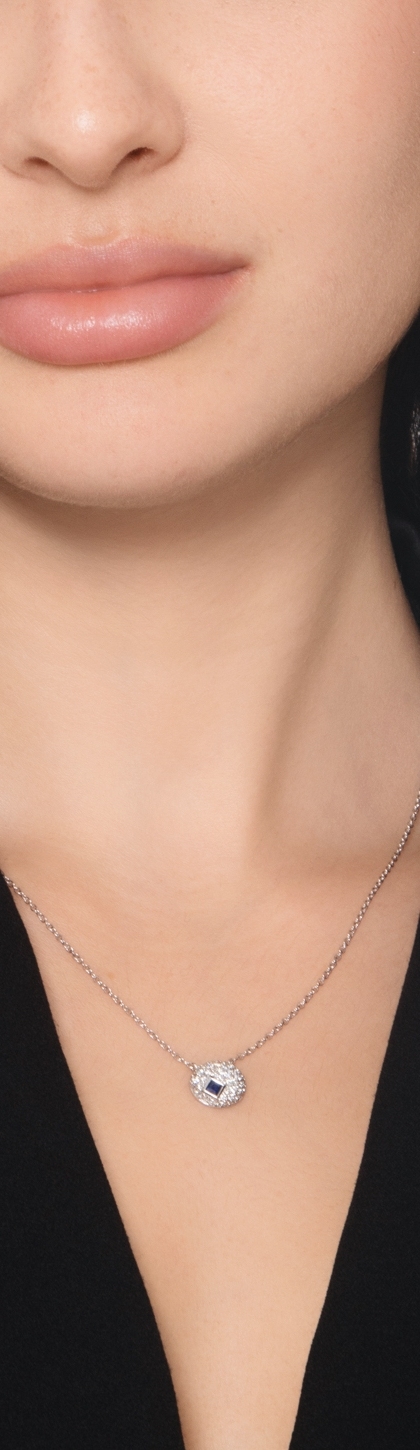 Diamond pavè pendant necklace with sapphire in 18kt white gold