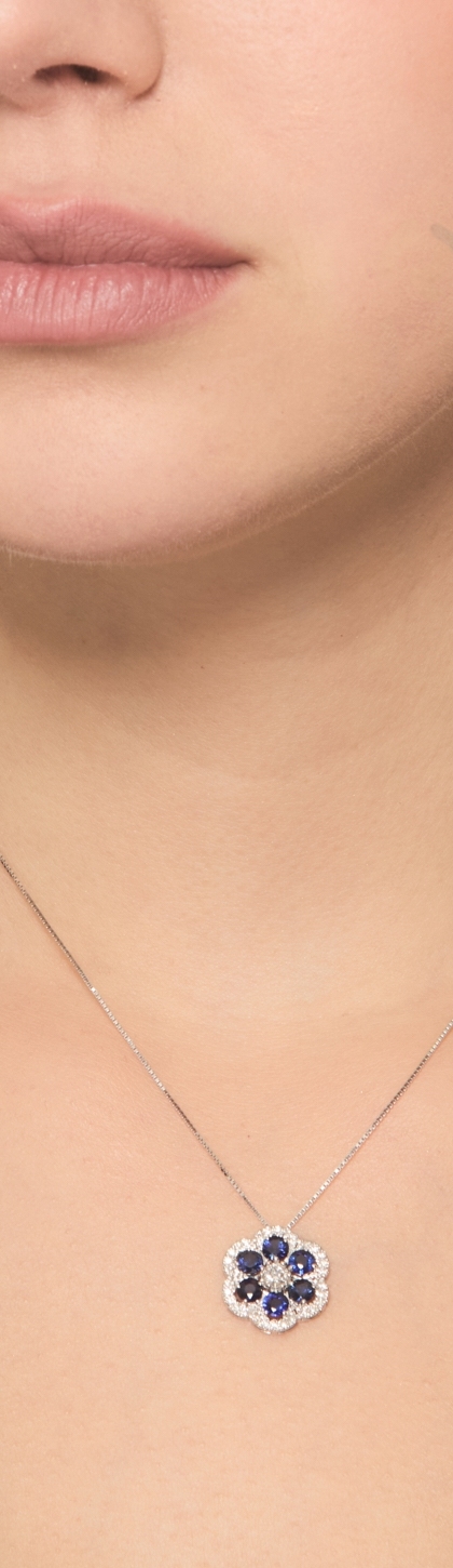 Flower necklace in white gold 18k with blue sapphires and diamonds