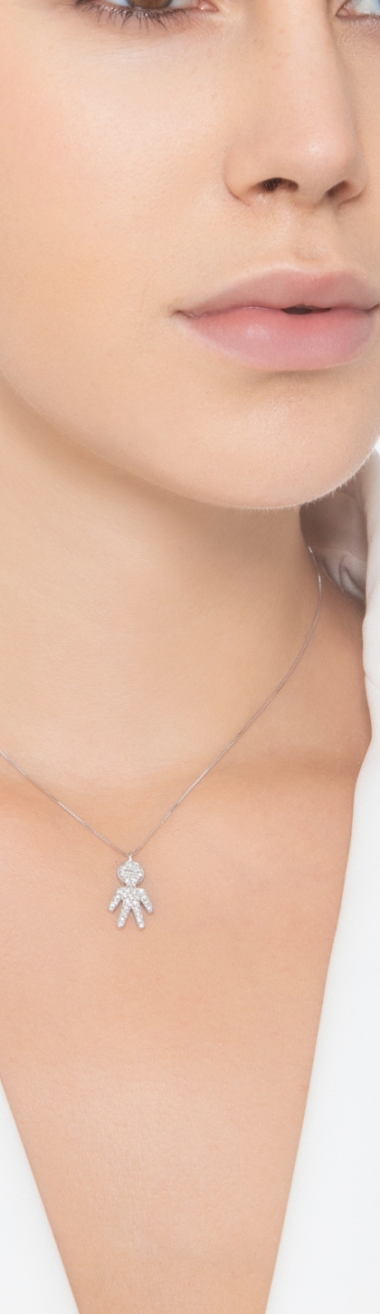 Necklace in white gold 18k with kid diamonds pendant brilliant cut, H color, Vs clarity.