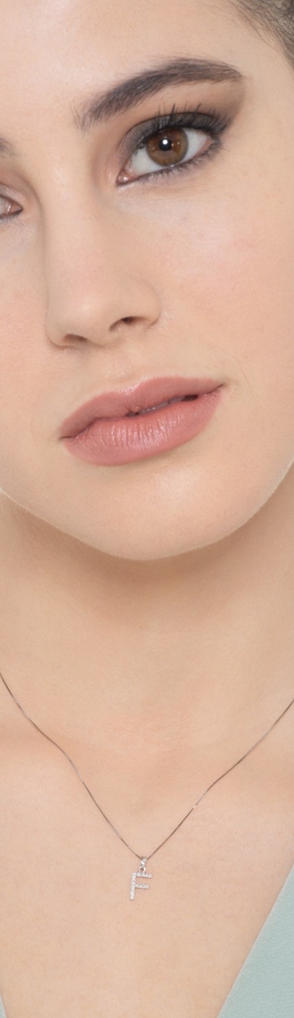 Letter F pendant with diamonds in 18k white gold