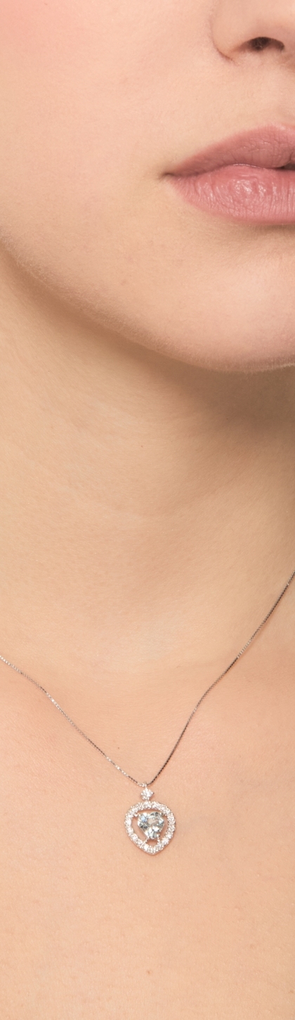 Necklace in white gold 18k with aquamarine heart shaped pendant and diamonds