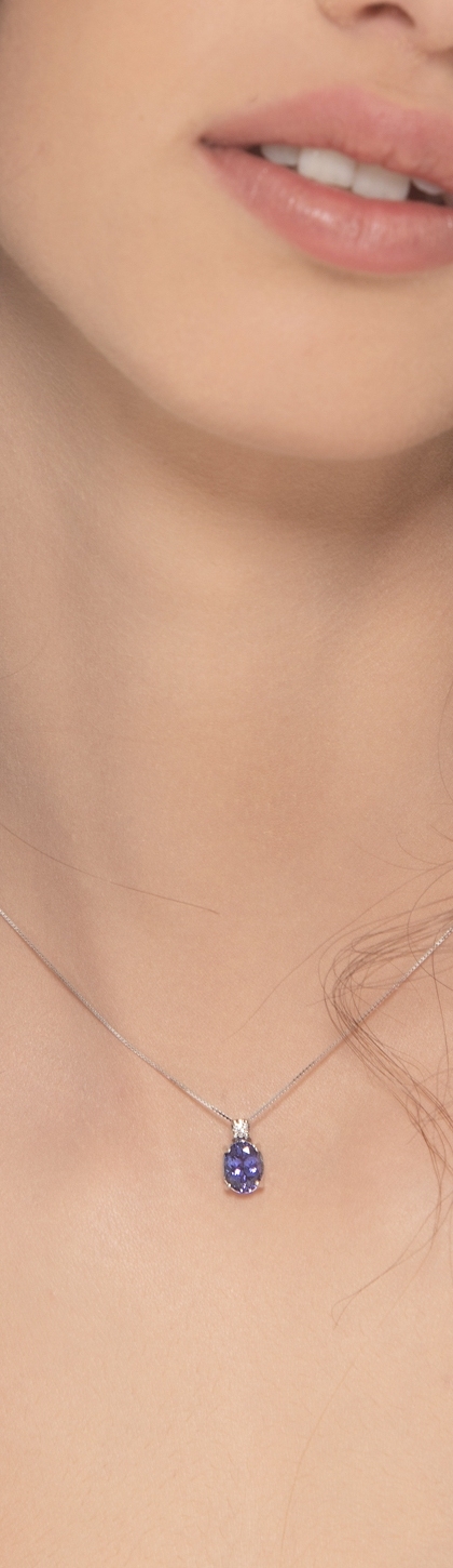 Necklace in white gold 18k with tanzanite oval cut and diamonds