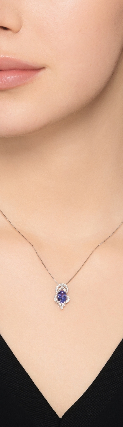 Necklace in white gold 18k with tanzanite oval cut and diamonds