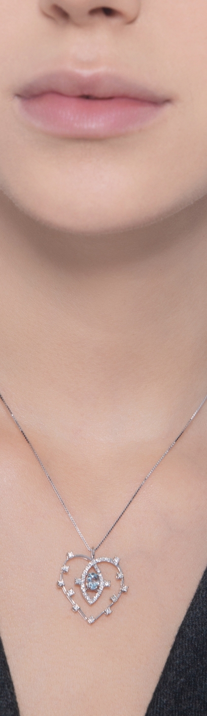 Necklace with heart diamonds pendant and aquamarine