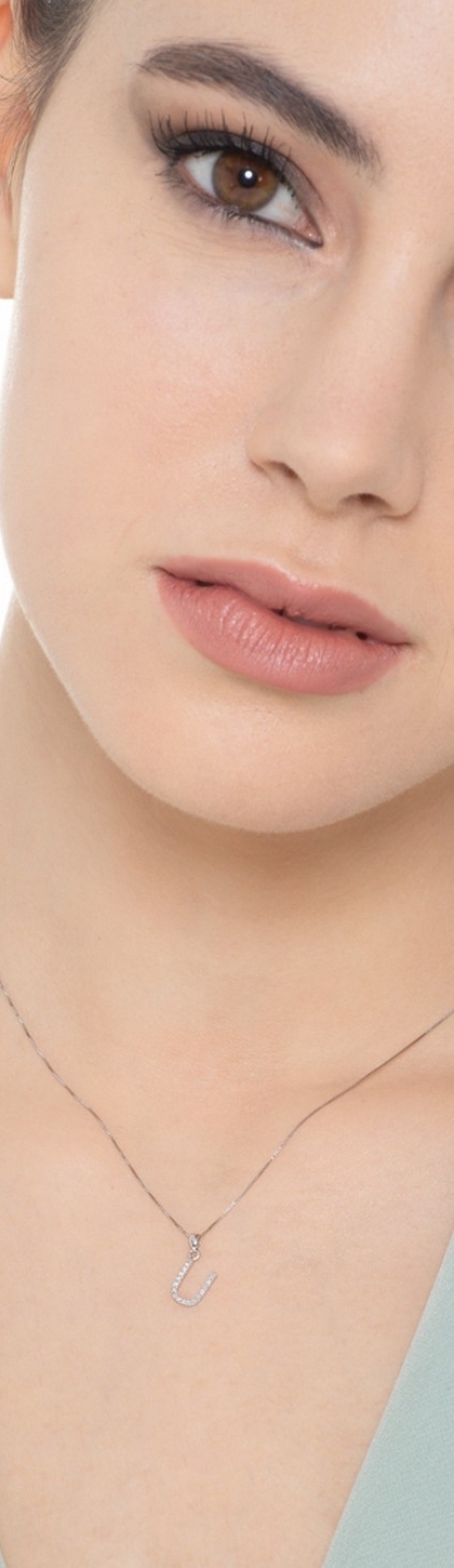 Necklace with initial U in white gold and diamonds