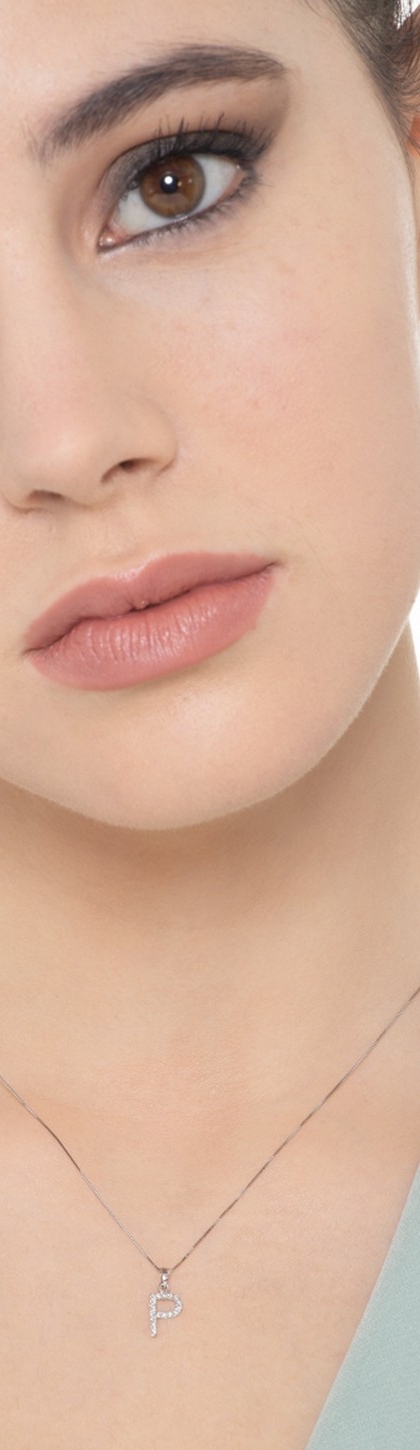Necklace with letter P in white gold and diamonds