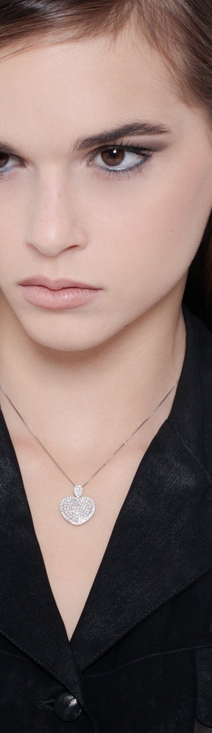 Rounded heart pendant with round cut diamonds