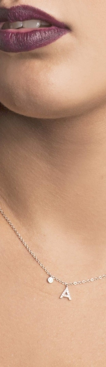White gold initial A necklace with diamonds