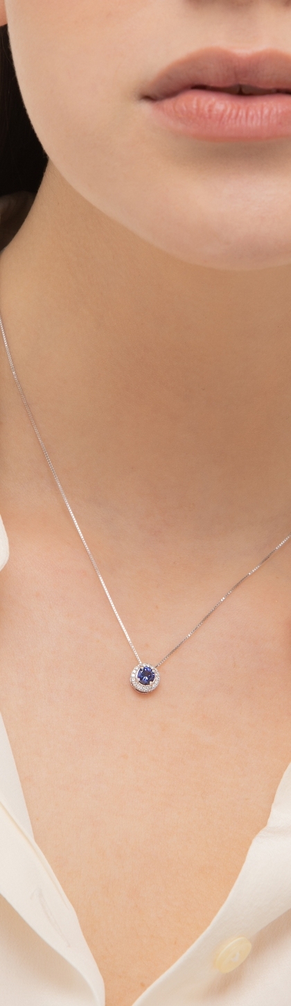 Necklace in white gold 18k with central blue sapphire and diamonds