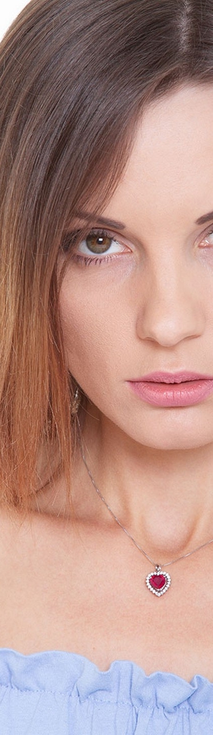 Necklace with pendant in white gold 18k heart cut ruby and diamonds
