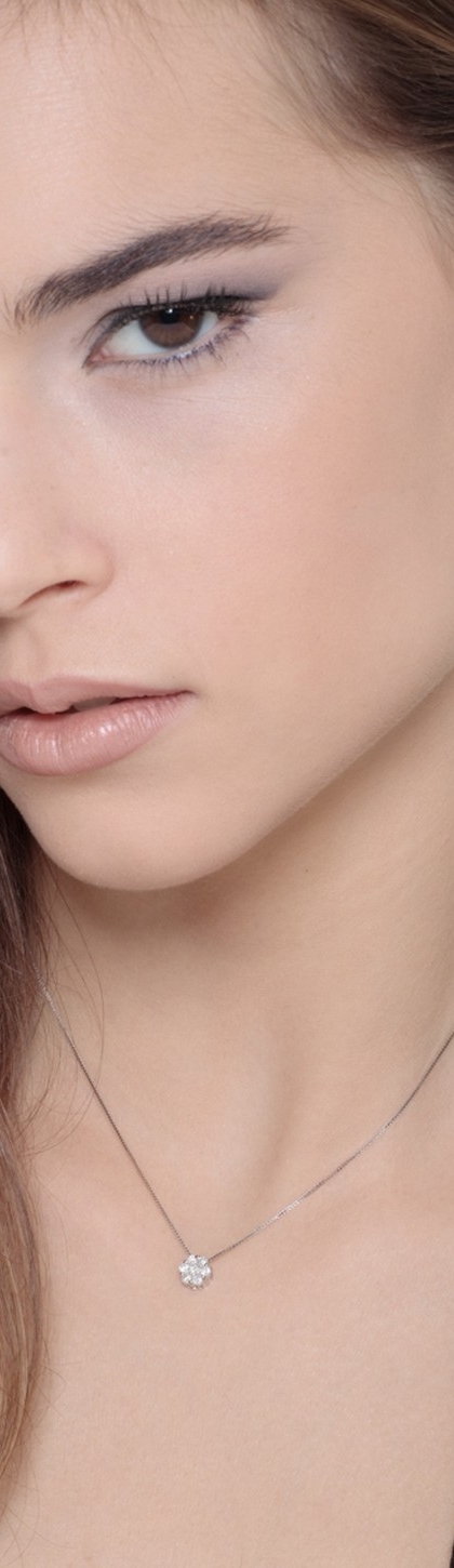 Necklace in 18k white gold with diamond solitaire illusion pendant