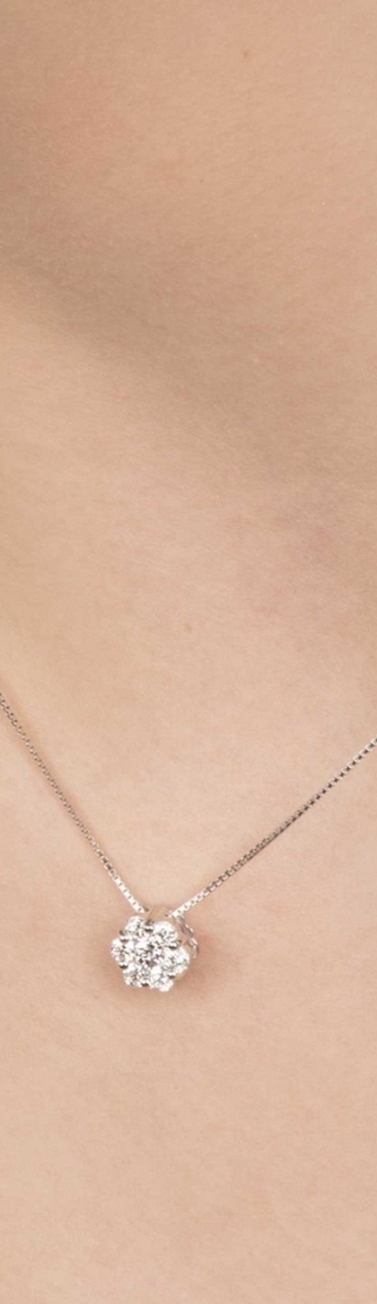 Necklace in 18k white gold with diamond solitaire illusion pendant