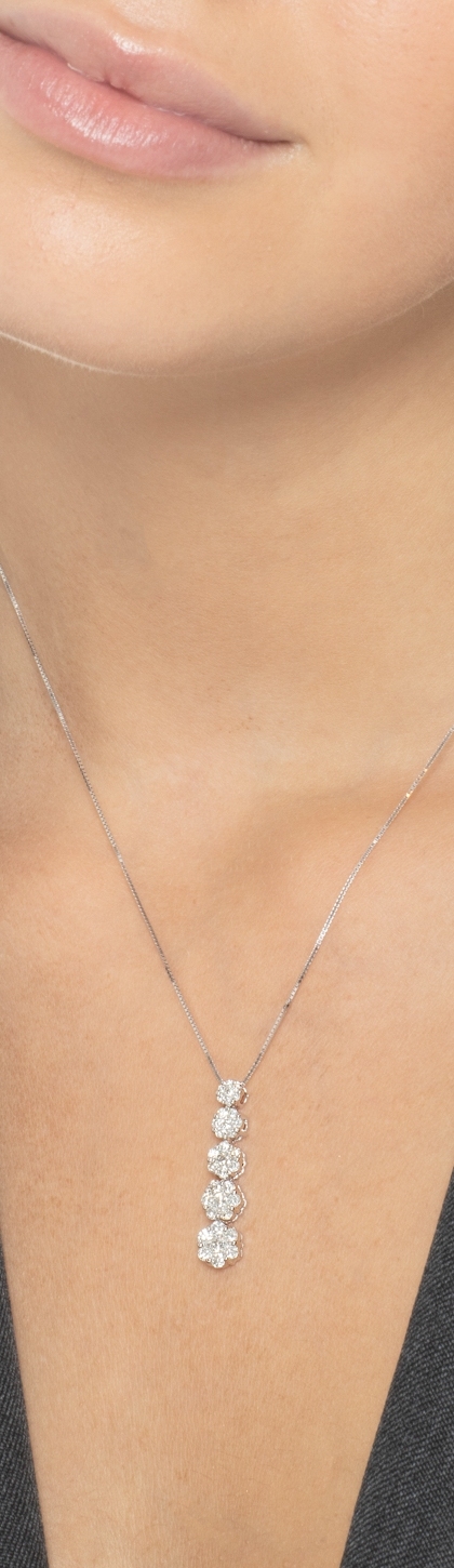 White gold 18k necklace with 5 flower diamonds illusion pendant