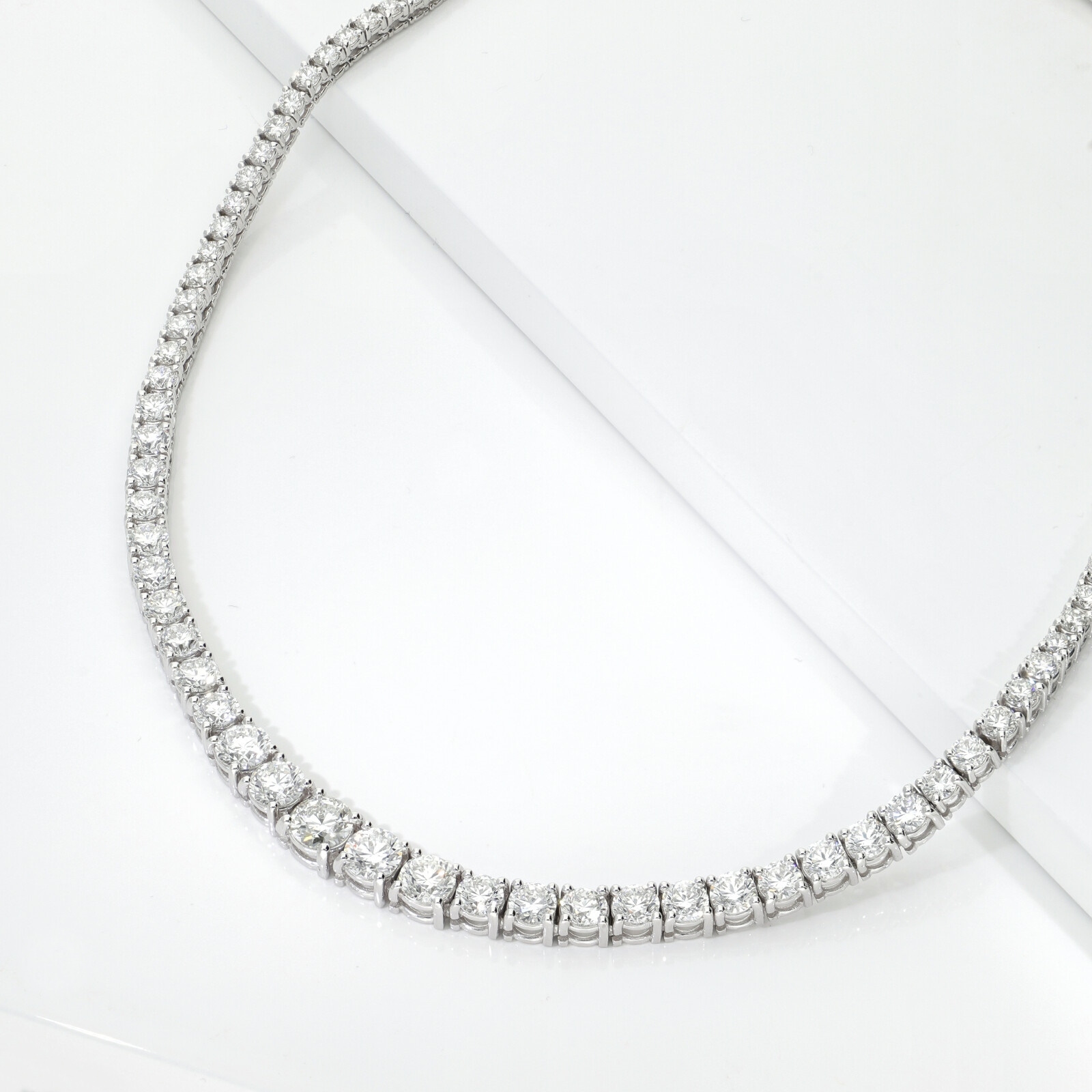 Riviere tennis diamond necklace in 18kt white gold