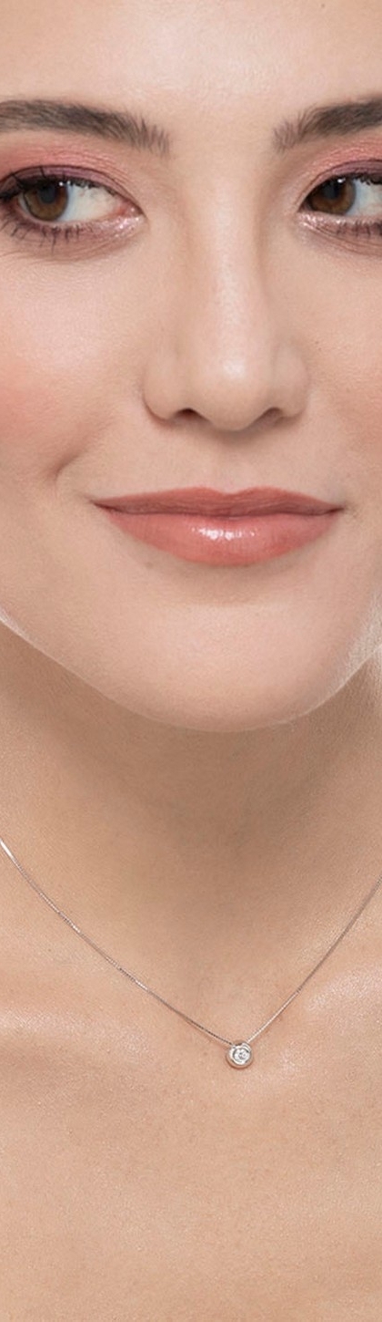 18k white gold full bezel necklace with 0.10 ct diamond