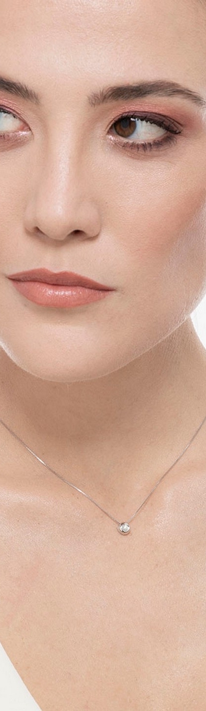 18k white gold full bezel solitaire necklace with 0.07 ct diamond