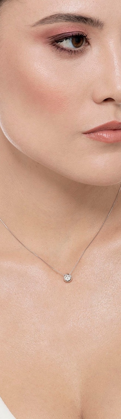 18k white gold full bezel solitaire necklace with 0.15 ct diamond