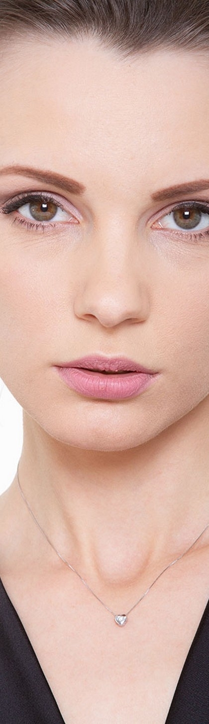 18k white gold necklace with heart shaped pendant and diamond