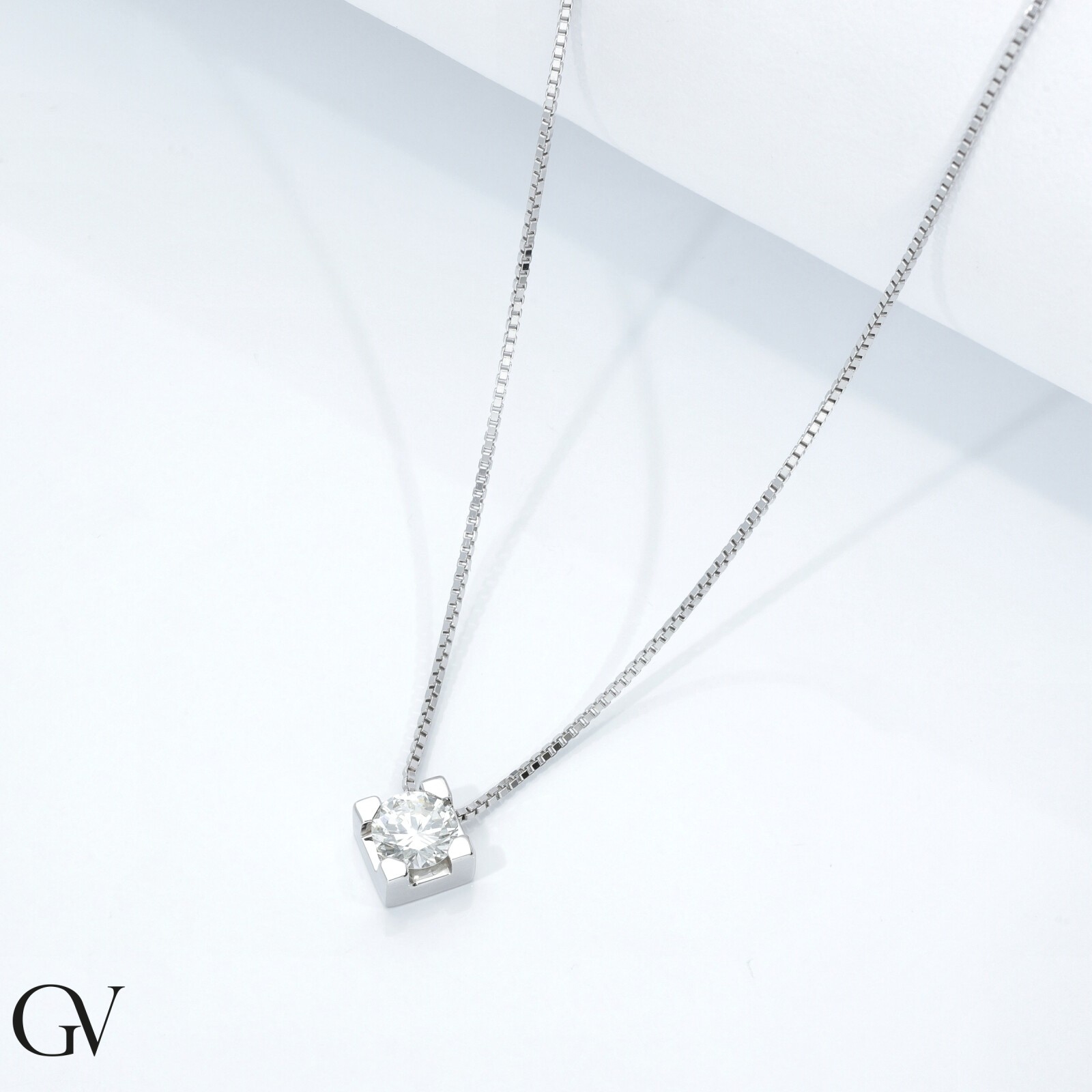 18k white gold solitaire necklace with 0,70 ct diamond