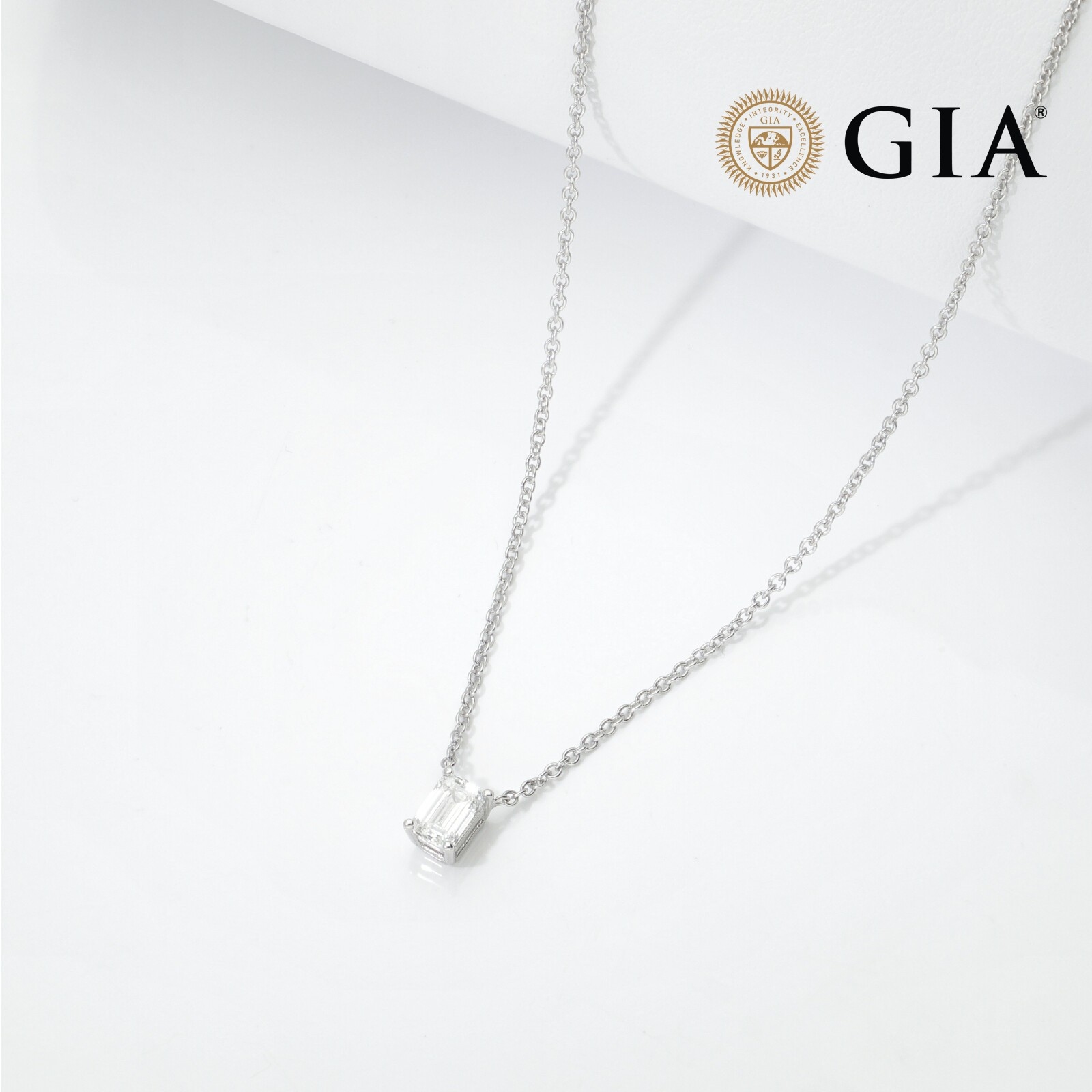 Necklace with diamond emerald cut 0.50ct GIA in white gold 18k