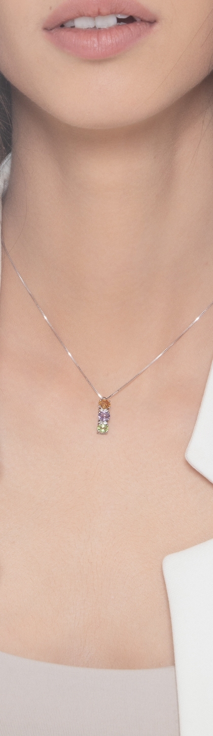18k white gold multicolor trilogy necklace with citrine, amethyst, peridot and diamonds
