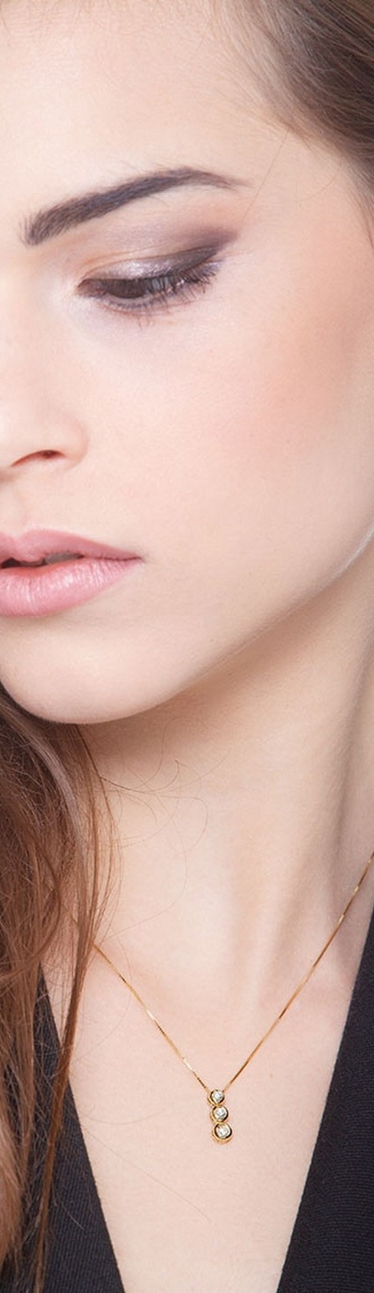 18k yellow gold necklace with trilogy diamond pendant