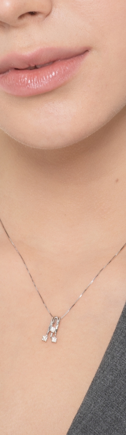 Trilogy necklace in white gold 18k with diamonds brilliant cut, H color, Vs clarity.